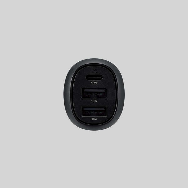 スマートフォンなどを合計3台充電できる車載充電器。