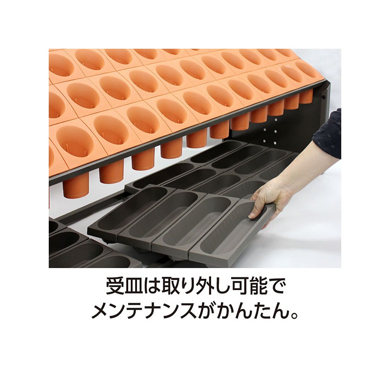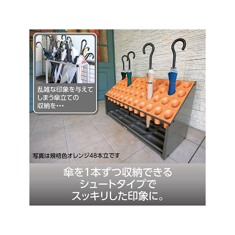 水気に強い樹脂製でサビにくいシュート式傘立て。傘が絡まないので景観をキレイに保つことができます。36本収納可能。